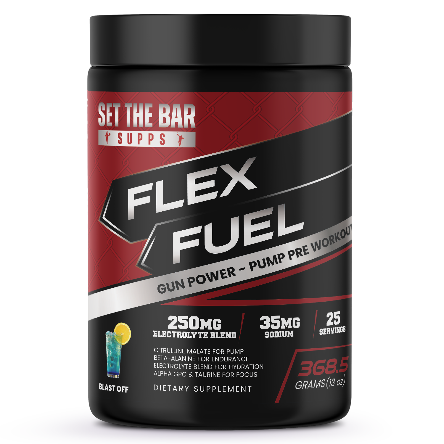 Designed for athletes who want it all—energy, pump, and focus—FLEX FUEL - Gun Power Pump with Blast Off flavor delivers a bold kick of caffeine to keep you fired up and crushing your goals.