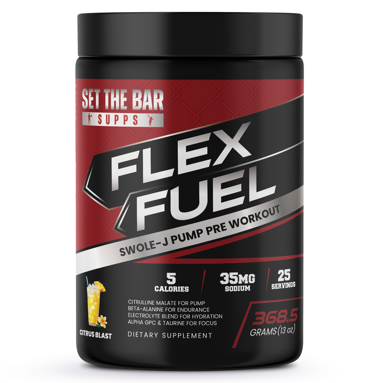 Elevate your workouts with FLEX FUEL - Swole-J Pump Pre-Workout, crafted to deliver intense pumps, sustained energy, and razor-sharp focus. Available in delicious Juicy Peach and vibrant Citrus Blast flavors, this powerful pre-workout will help you dominate every session.