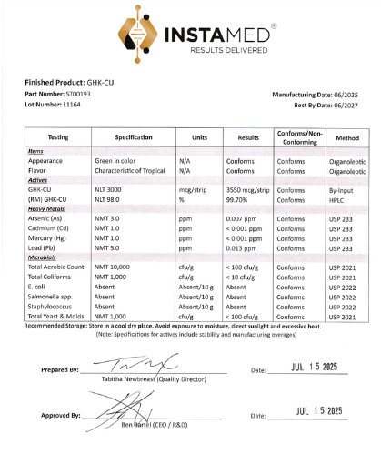 Our oral dissolving strips use advanced buccal delivery to absorb GHK-Cu directly through the tissues of the mouth using our InstaRelease technology—bypassing the digestive system for faster, more efficient uptake—no injection necessary.